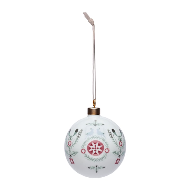 Swedish Grace Winter julkula, 8 cm i diameter, från Rörstrand är prydd med stilrena granbarr, frostiga mistlar och snöflingor. Designad av Katarina Brieditis, den erbjuder en modern tolkning av Louise Adelborgs klassiska Swedish Grace. Tillverkad i porslin, denna vackra julkula skapar en magisk och mysig stämning som förhöjer jultraditionerna, perfekt som gåva.
