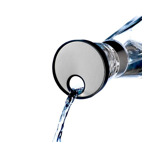 Tillverkad i stål och svart konstmaterial, sluter helt tätt så att vattnet inte tar åt sig smak om du t.ex. förvarar vatten i den i kylskåpet.