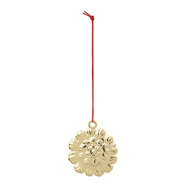 Dekorationerna är pläterade med äkta silver och guld, och 2024-kollektionen innehåller bland annat denna guldpläterade ”kulblomma”. Inspirerad av Karen Blixens levande beskrivningar av naturen, uttrycker detta ornament hennes kärlek till blommor och förmågan att hitta skönheten i de enklaste motiven. Precis som de andra små hängena i serien är denna kulblomma cirka 6,5 cm hög och fungerar perfekt som fönsterdekoration.