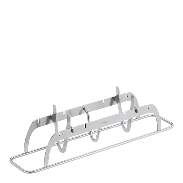 Rösle Fiskstativ, med dimensionerna 30x6,5 cm, är det ultimata tillbehöret för att grilla fisk såsom öring, lax och havsaborre. Dess speciella beslag är utformade för att säkerställa att fiskskinnet hålls intakt och inte skadas under grillningen, vilket resulterar i en perfekt tillagad och vackert presenterad fisk.