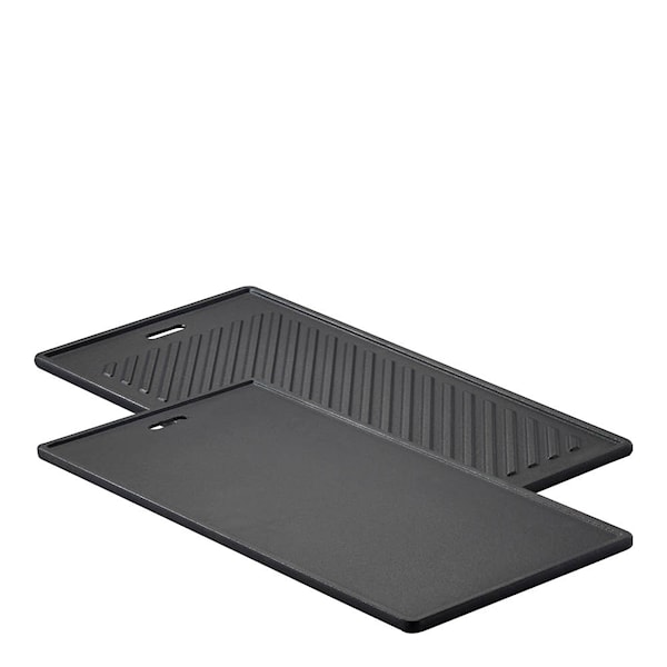 Rösle Grillplatta i gjutjärn 45x24 cm svart är framtagen för mångsidig och exakt grillning. Den emaljerade gjutjärnskonstruktionen ger effektiv värmefördelning och hög värmelagring. Plattan placeras ovanpå grillgallret och passar alla Rösle-grillar.