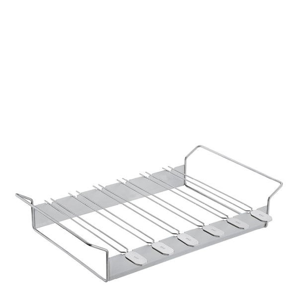 Rösle Grillspett med Stativ, 6-pack, är den ultimata lösningen för grillning av mindre livsmedel. Detta set innehåller 6 spett och ett praktiskt stativ. Varje spett är cirka 33 cm långt och har dubbla spetsar för att säkerställa att maten hålls på plats och grillas jämnt runt om.