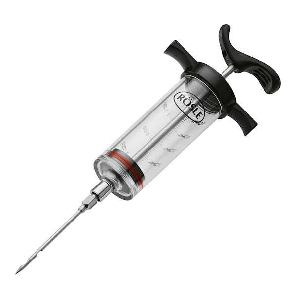 Rösle Marinadspruta, med en längd på 22,5 cm, är ett oumbärligt verktyg för att förstärka smaken på ditt kött. Tillverkad av högkvalitativt stål möjliggör denna marinadspruta att injicera marinaden direkt in i köttet, vilket resulterar i en intensifierad smak och betydligt kortare marineringstid. Marinadsprutan har en kapacitet på 50 ml och är utrustad med en avtagbar nål som har en snabblåsningsmekanism för enkel användning och rengöring.
