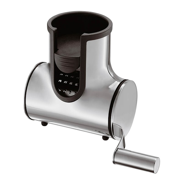 Den kompakta storleken gör ostkvarnen enkel att använda både vid bordet och på köksbänken. Tillverkad i 18/10 rostfritt stål för lång hållbarhet och stabilitet. Rivinsatserna tas enkelt ur och kan rengöras i diskmaskin för smidig och hygienisk skötsel.