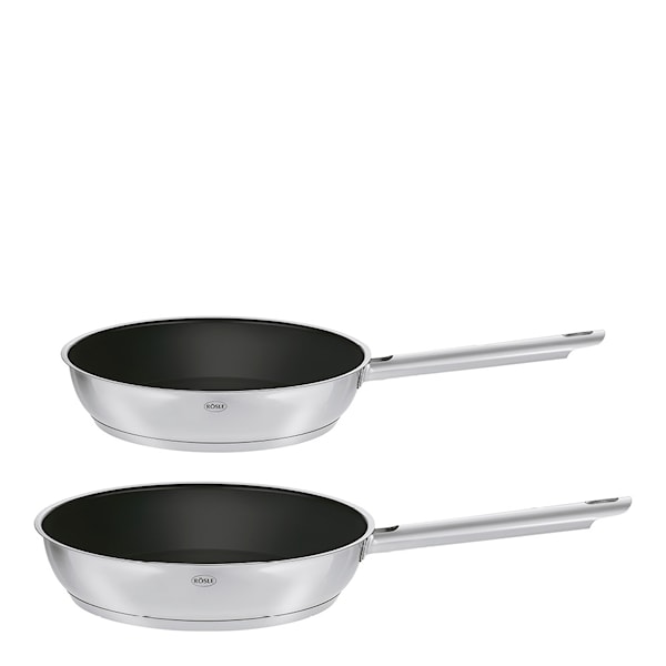 PureElements stekepanneset 2 delar från Rösle kombinerar funktionalitet med högkvalitativa material. Setet innehåller stekpannor på 20 och 28 cm med ProCeraPlus keramisk non-stick-beläggning, vilket gör det idealiskt för fettfri stekning. Beläggningen är fri från PTFE och PFAS, och den inkapslade aluminiumkärnan ger jämn värmefördelning.
