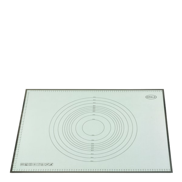 Rösle bakmatta 68x53 cm är ett praktiskt och tåligt hjälpmedel för dig som vill baka med precision och enkelhet. Tillverkad i slitstarkt silikon ger den en jämn arbetsyta som underlättar kavling, formning och annan förberedelse av degar och bakverk. Den halkfria undersidan håller mattan stadigt på plats på bänken, vilket gör att du kan arbeta bekvämt utan att den glider.