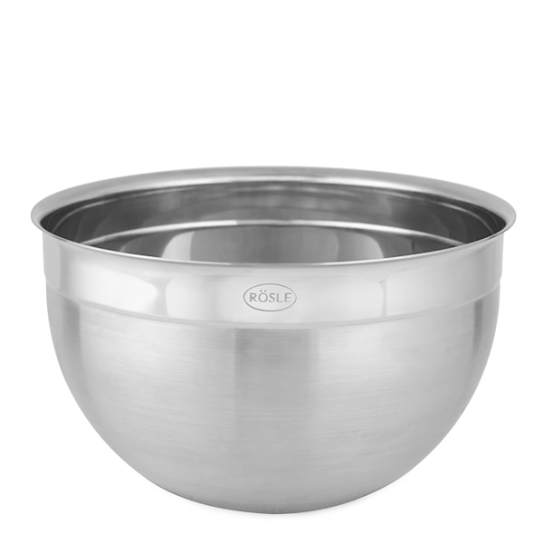 Bunke av högkvalitativt, rostfritt stål, perfekt till bakning eller matlagning. Även praktisk till förvaring av en mängd olika livsmedel och så snygg att den också funkar till servering. Bunken har en praktisk hällkant som gör att du undviker spill vid upphällning. Tål maskindisk, men inte ugn. Finns i flera olika storlekar, allt till dina olika behov i köket. Från tyska familjeföretaget Rösle.