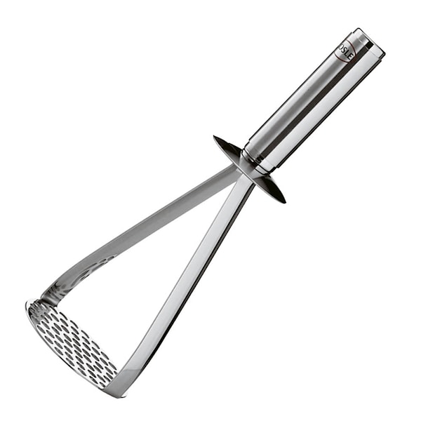 Rösle potatisstöt i rostfritt stål är ett robust och pålitligt redskap för att enkelt skapa ett jämnt och luftigt mos. Tack vare den välplacerade fördelningen av hål får du ett effektivt resultat, oavsett om du föredrar ett lent potatismos eller en mer rustik struktur med bitar kvar.