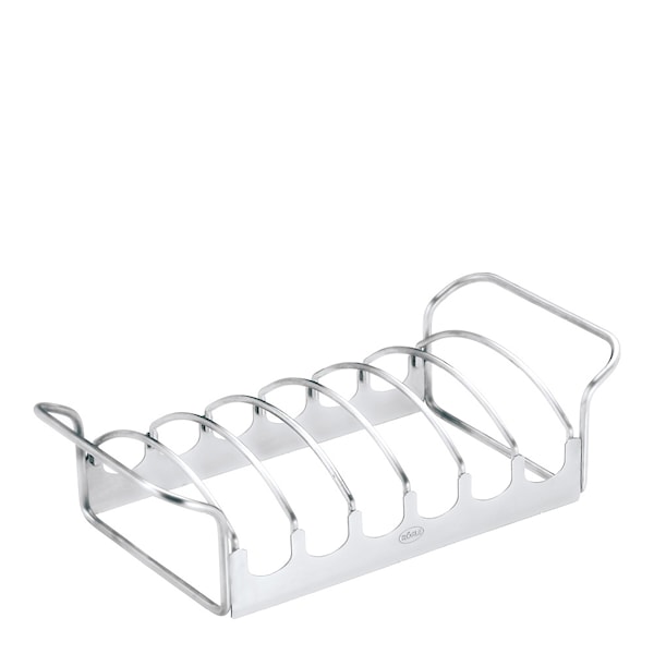 Med praktiska handtag är det lätt att transportera hela stekar säkert i korgen från förberedningsbordet till grillen och tillbaka igen. Tillverkad av hållbart stål är detta revbensställ robust och pålitligt för långvarig användning.