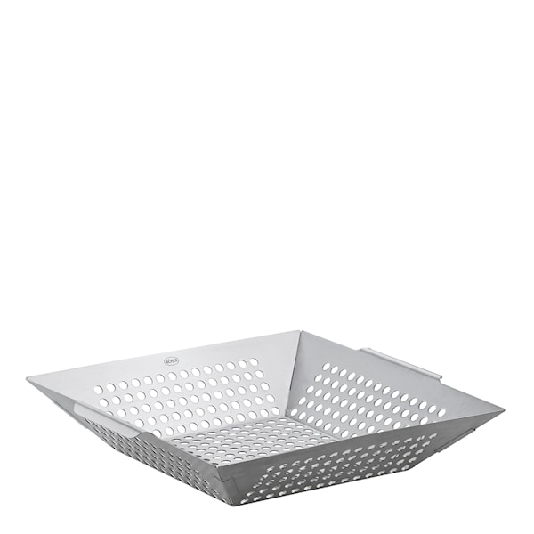 Grillbricka 33,5x30 cm Stål från Rösle är perfekt för grillning av exempelvis skivade grönsaker, frukt och kött. Brickan är tillverkad av en perforerad rostfri stålplatta som ger direkt värmeöverföring till maten som ska grillas. På motsatta sidor av brickan finns två handtag som ger ett säkert grepp för transport från grillen till bordet, du får även bra grepp med grillhandskar. Går lika bra att använda på grillen som i ugnen.