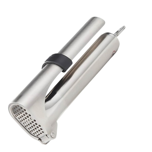 Pressen är lämplig för både oskalade vitlöksklyftor och ingefära. Silen kan fällas ut för enkel rengöring under rinnande vatten, vilket underlättar underhåll. Den klassiska designen kompletteras av en praktisk upphängningsring.