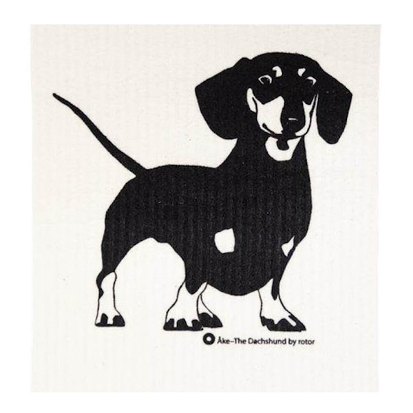 Mönstret i svart och vitt föreställande en tax ger ett hemtrevligt och genomtänkt intryck – en utmärkt balans mellan estetik och nytta – perfekt för hundälskare.