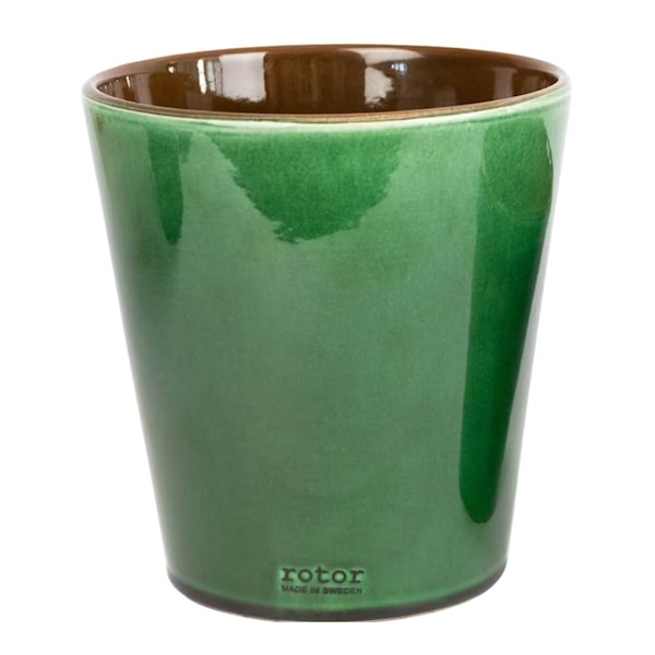 Rotor Design Plant blomkruka stor 16x17 cm grön är tillverkad i glaserad keramik med mjuk, blank yta som lyfter fram både växten och miljön omkring. Den harmoniska gröna tonen fungerar i de flesta hem – från ljust nordiskt till mer rustikt och färgrikt.