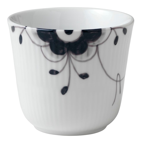 Dubbelväggad termomugg ur serien Black Fluted Mega, perfekt till morgonkaffet eller fikastunden. Muggens tjocka väggar gör att du tryggt kan kupa händerna runt den, utan att den blir för varm att hålla, medan du njuter av din favoritdryck.Kombinera gärna med de andra fina serveringsdelarna ur samma serie.
