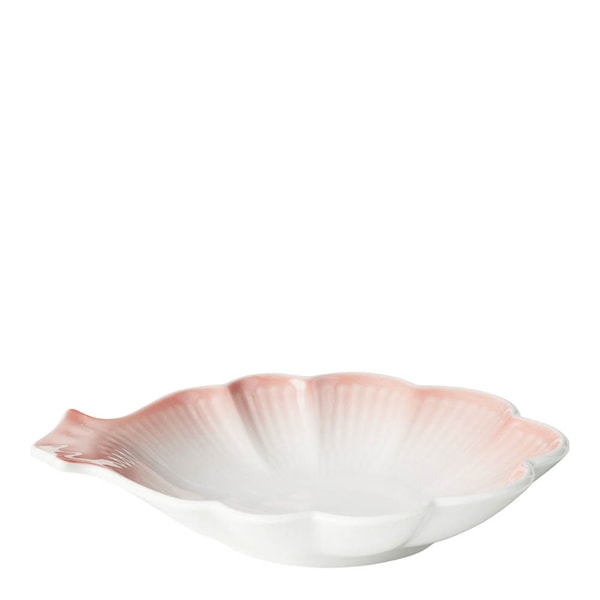 Royal Copenhagen Iris blomformad assiett 16 cm korall är en porslinsassiett med tydlig formkaraktär. Den blomformade modellen ger ett särpräglat uttryck, och den spraymålade korallglasyren har en mjuk toning mot mitten som betonar reliefen.