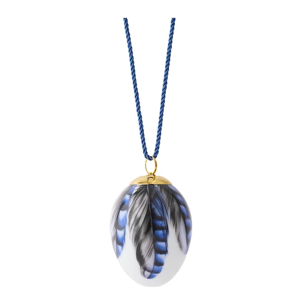 Royal Copenhagens påskägg från vårkollektionen 2025 med motivet 'stora nötskrika fjädrar' för naturens vackra detaljer till liv för att fira 250-årsjubileet. Dekorerat med stora, draperade blålila fjädrar från nötskrikan, fångar detta påskägg fågelns unika skönhet och elegans.
