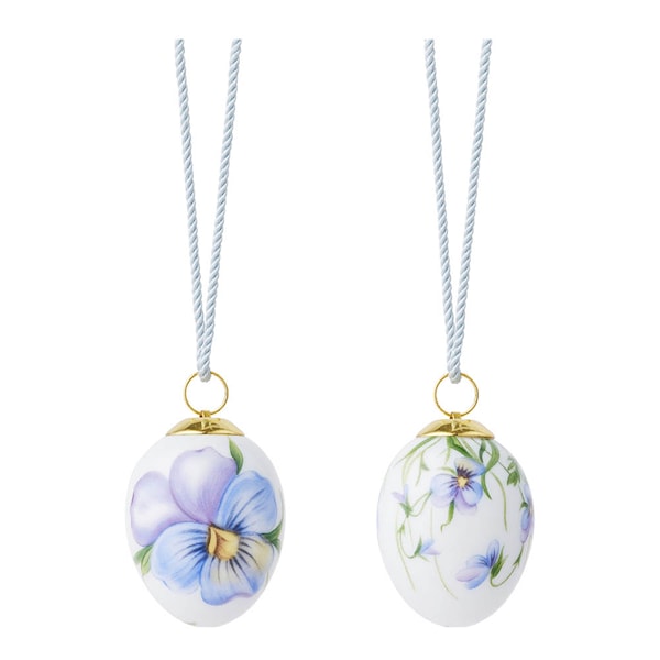 Royal Copenhagen Minägg 5 cm Styvmorsviol – Vårkollektionen 2026 är ett charmigt set med två små porslinsägg dekorerade med vårens första blomma. Styvmorsviolens karakteristiska blå-lila färgskala lyfts fram på ett ägg med närbild, och på ett annat i form av en blomstrande äng.