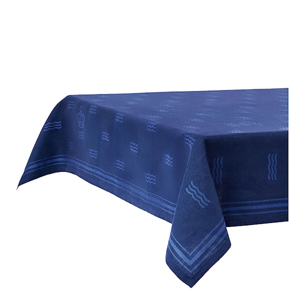 Waves-duken på 144x270 cm är en hyllning till Royal Copenhagens historia. De ikoniska tre vågorna och kronan är invävda som ett elegant mönster som speglar varumärkets arv från 1775. Den genomtänkta designen skapar en stilfull inramning kring både vardagsmiddagar och festliga tillfällen.