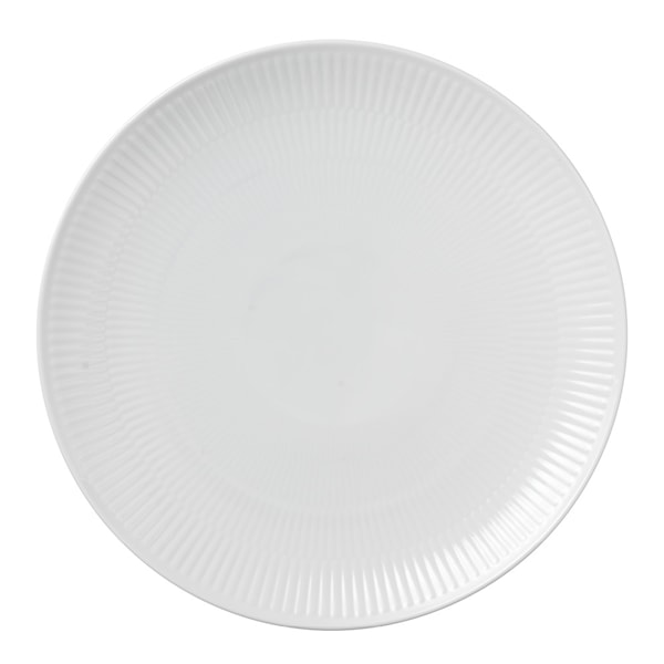White Fluted Tallrik i coupeform på 27 cm från Royal Copenhagen ingår i serien White Fluted och förenar klassiskt hantverk med en modern estetik. Det minimalistiska formspråket och den rena vita färgen ger tallriken ett tidlöst uttryck som enkelt kan kombineras med andra delar ur Royal Copenhagens sortiment. Den diskreta räfflade strukturen tillför en elegant detalj som lyfter helheten utan att dominera.
