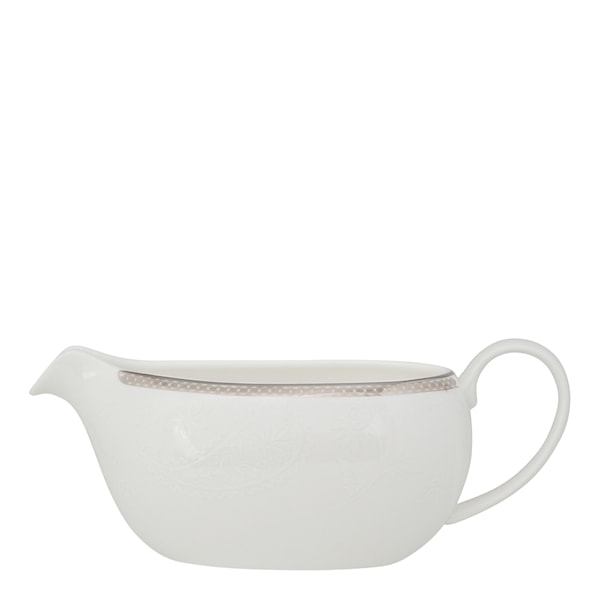 Silver Paisley såssnipa från Royal Porcelain kan användas för att servera sås till middagen eller vaniljsås till den hemgjorda äppelpajen. Komplettera med fat till såssnipan.