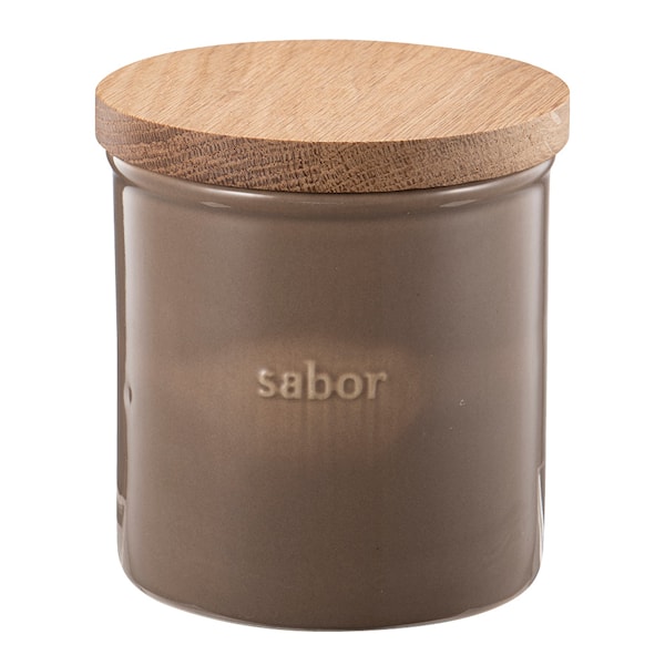 Sabor förvaringsburk på 0,5 liter är en stilfull och praktisk lösning för att organisera ditt kök. Denna burk, med sin eleganta design och moderna färgsättning, bidrar till en harmonisk och välorganiserad köksmiljö. Tillverkad av robust stengods, har burken ett lock i ek som försluts med en silikonring, vilket gör den perfekt för att förvara torrvaror som flingor, kaffe eller pasta och håller dem fräscha längre.
