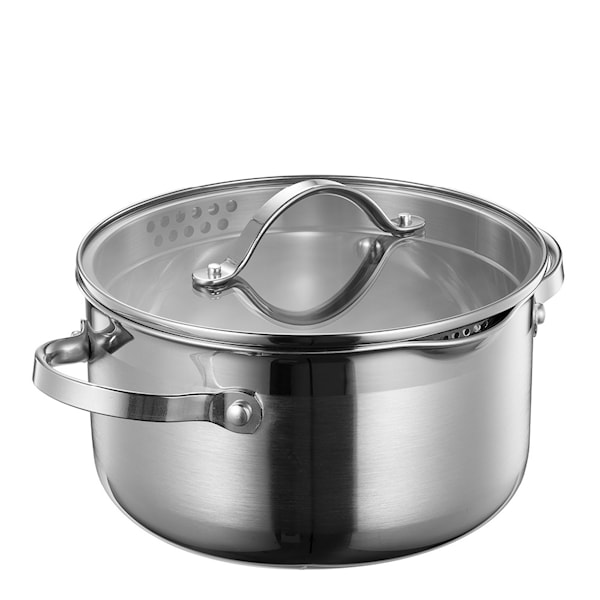 Optimal gryta 3L från Sabor. Optimal-grytserien är designad för att ge dig en enastående upplevelse av både funktion och hållbarhet i varje detalj. Grytorna har en praktisk hällpip och inbyggd sil i locket, vilket gör det enkelt att hälla av vätska utan behov av extra redskap. Den smarta designen tillåter användning av alla typer av redskap, inklusive stål, vilket ger maximal flexibilitet.