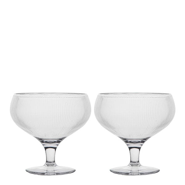 Billi coupeglas från Sagaform har en unik och karakteristisk design som tydligt representerar varumärket. Med en distinkt, rundad kupa smyckad med ränder och en låg fot är detta coupeglas inte bara vackert utan också otroligt funktionellt. Den praktiska, stapelbara och genomtänkta designen gör glaset lämpligt att använda vid olika tillfällen.