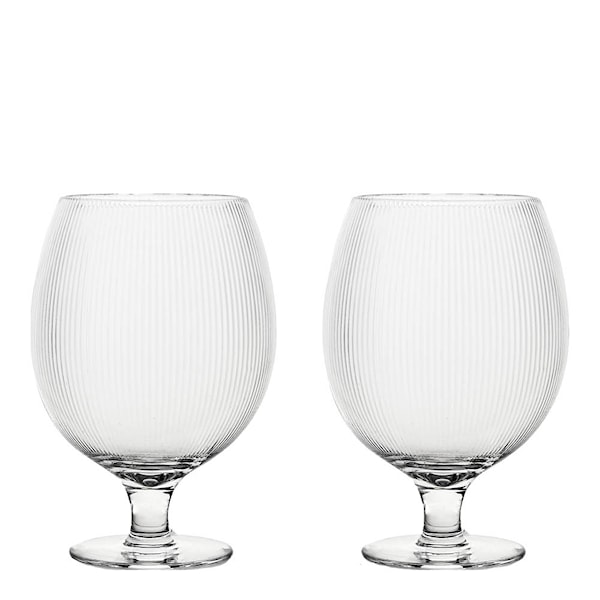 Blanka ölglas i 50 cl erbjuder en modern tolkning av det klassiska ölglaset. Den klara glasmassan, de karakteristiska räfflorna och den mjuka basen ger glaset en sofistikerad form som passar lika bra till lager som till cocktails eller alkoholfria alternativ. Varje glas är munblåst i tunt kristallglas, vilket ger en exklusiv känsla och unika variationer. Tål maskindisk och säljs i 2-pack i presentförpackning – perfekt som gåva eller för att lyfta din egen servering.