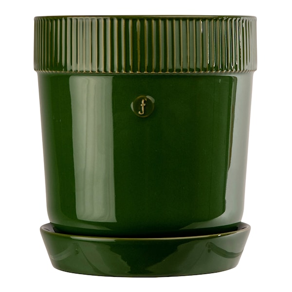Elise Kruka 14x15 cm - den mindre modellen ur Sagaforms serie av nya krukor. Med en enkel och stilren form tillsammans med de vackra detaljer utstrålar krukan Elise en genomarbetad känsla. Serien är tillverkad i klassiskt stengods och är dekorerad med ett emblem och Sagaforms karakteristiska rand. Krukan har en rak och enkel form med ett dräneringshål i botten, tillhörande fat har en något högre kant som ger krukan ett elegant helhetsintryck.