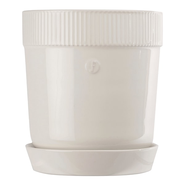 Elise Kruka 14x15 cm - den mindre modellen ur Sagaforms serie av nya krukor. Med en enkel och stilren form tillsammans med de vackra detaljer utstrålar krukan Elise en genomarbetad känsla. Serien är tillverkad i klassiskt stengods och är dekorerad med ett emblem och Sagaforms karakteristiska rand. Krukan har en rak och enkel form med ett dräneringshål i botten, tillhörande fat har en något högre kant som ger krukan ett elegant helhetsintryck.