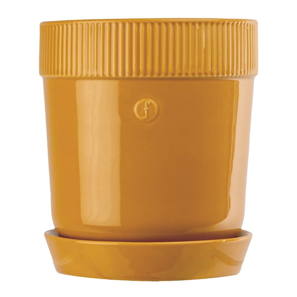 Skapa en vacker effekt genom att kombinera den med större storlekar eller plantera olika örter och placera dem i fönstret. Krukan är smyckad med ett emblem och Sagaforms karakteristiska rand. Tillverkad av stengods och glaserad i tre vackra, naturinspirerade färger – gult, grönt och vitt. Finns i tre olika storlekar.