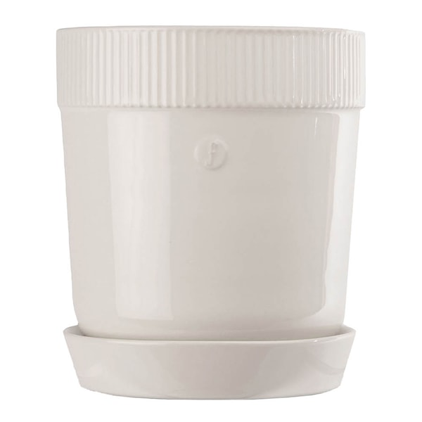 Skapa en vacker effekt genom att kombinera den med större storlekar eller plantera olika örter och placera dem i fönstret. Krukan är smyckad med ett emblem och Sagaforms karakteristiska rand. Tillverkad av stengods och glaserad i tre vackra, naturinspirerade färger – gult, grönt och vitt. Finns i tre olika storlekar.