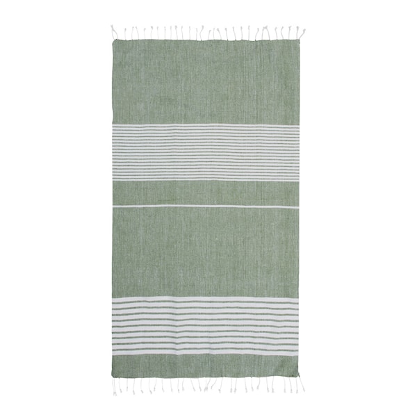 Mönstret på ränderna är karakteristiskt för Sagaform och varierar beroende på färg. Finns i mjuka nyanser av blått, grönt, gult och grått. Handduken torkar snabbt och är enkel att hänga upp. Den är smidig att rulla ihop och ta med sig till stranden, poolen eller i träningsväskan.