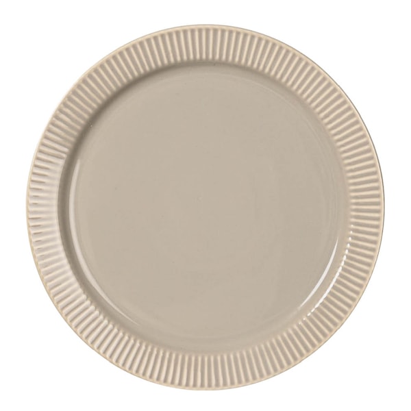 Tallriken är tillverkad i benporslin och tål diskmaskin. Den runda formen och stripade kanten är typisk för Inka-serien och gör det enkelt att matcha med andra delar i samma kollektion.