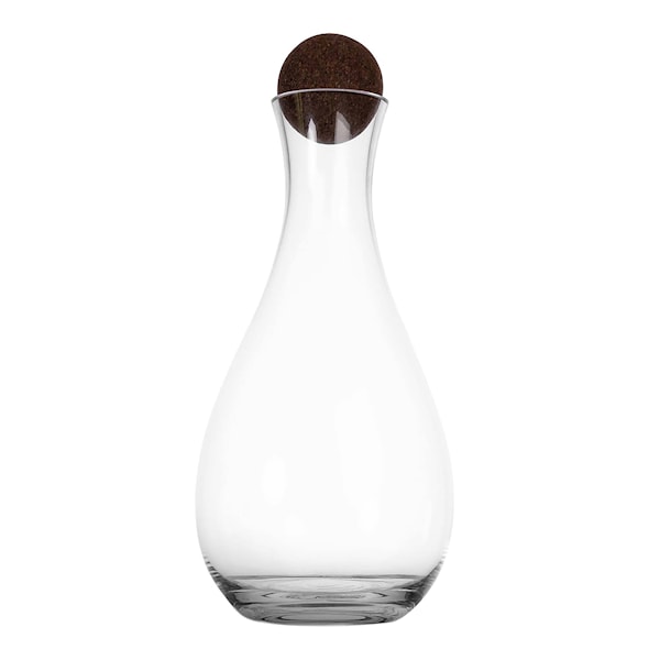 Vinkaraffen Nature från Sagaform är tillverkad i munblåst borosilikatglas med ett lock tillverkat i mörkbrun kork.