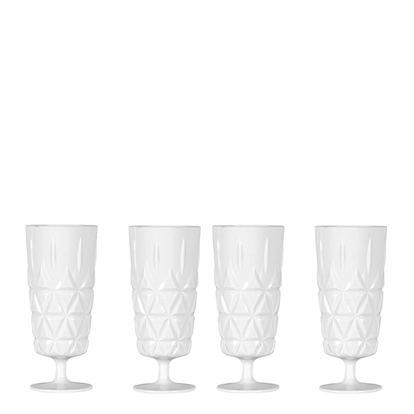 Lika eleganta som tåliga är de här glasen på fot från Sagaform. Glasen är tillverkade i akrylplast, perfekta att ta med på picknicken, strandhänget eller kalaset i trädgården. Volym 20 cl