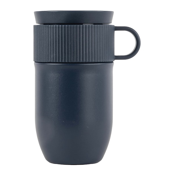 Det praktiska handtaget ger ett stadigt grepp, medan locket med push-funktion och en smart 360-graders öppning gör det möjligt att dricka från alla sidor utan spill – precis som en vanlig kopp.
