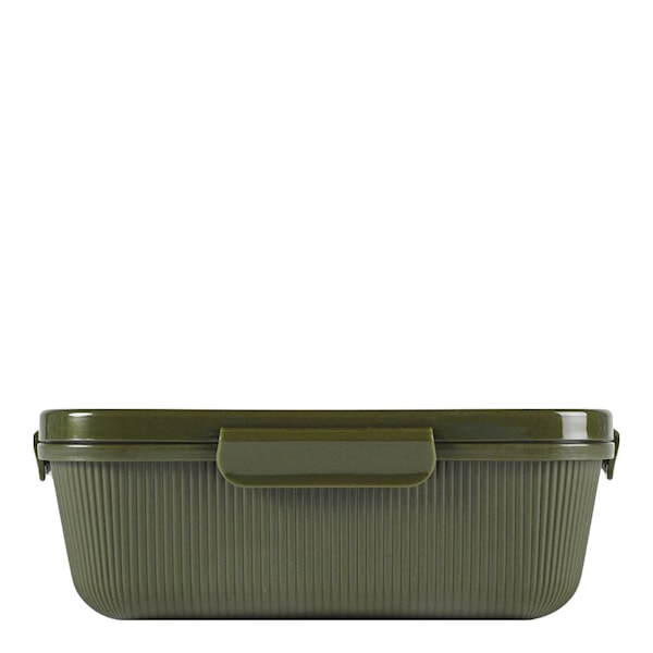 Matlådan rymmer 1,1 liter och har ett praktiskt klicklock som sluter tätt. Den tål både mikrovågsugn (upp till 110 °C) och diskmaskin, vilket gör den enkel att använda och rengöra. Designad av Studio Sagaform.