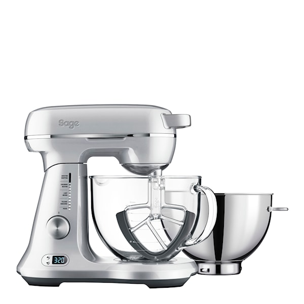 The Bakery Boss köksmaskin från Sage blandar enkelt med sin starka motor på 1200 W ihop tunga och lätta blandningar. Se på när köksmaskinen gör det tunga jobbet åt dig. Vispen är specialutformad med silikonskrapor, som skrapar skålens insidor i varje drag, vilket minskar tiden för blandningsprocessen och att diska blir en enkel match. Vispen kommer inte missa någon smet eftersom skålarna är lite upphöjda i botten. The Bakery Boss huvud snurrar medurs och tillbehören moturs, vilket ger en balans och man kan vara säker på att hela skålens innehåll blandas.