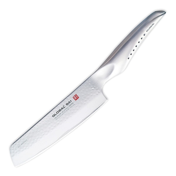 Kniven har ett ergonomiskt tumgrepp för bästa komfort och tack vare att det är av samma stålsort som eggen blir svetsen mellan blad och handtag starkare. Det yttre bladet är individuellt hamrat och ger varje kniv en unik personlighet. Sai har en spegelpolerad egg med Globals karakteristiska snäva vinkel på 12,5 grader. Liksom de klassiska Globalknivarna är skaftet i Global Sai fyllt med sjösand för att ge en perfekt balanserad kniv. Med sin exceptionella skärpa blir Globalkniven snabbt en favorit i köket!