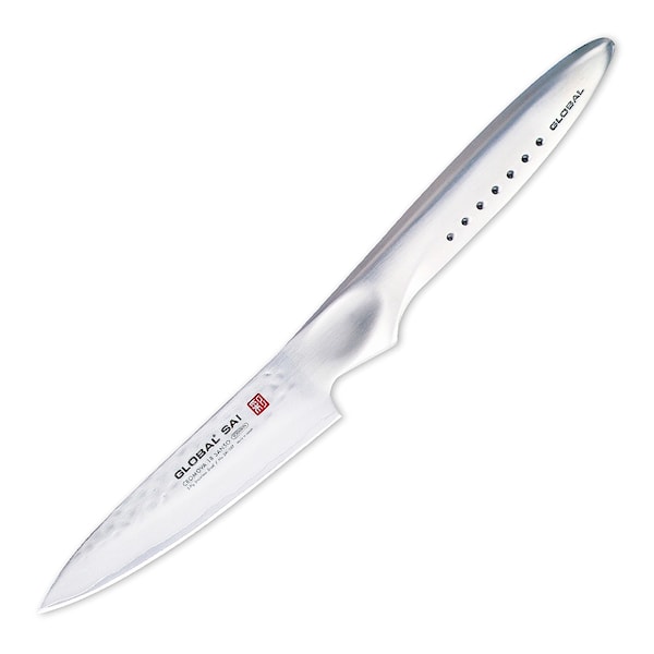 Sai-S01 från Global är en exklusiv skalkniv, perfekt för frukt och grönsaker. Bladet är utrustat med tre lager stål som gör kniven stabil och rosttålig - de två yttersta lagren stål i bladet samt en mjukare stållegering. Stålet i eggen är tillverkaren Yoshikin och Globals egna legering Cromova 18 – en rostfri stållegering med 18% krom samt hemlig procentandel molybdenum och vanadium.
