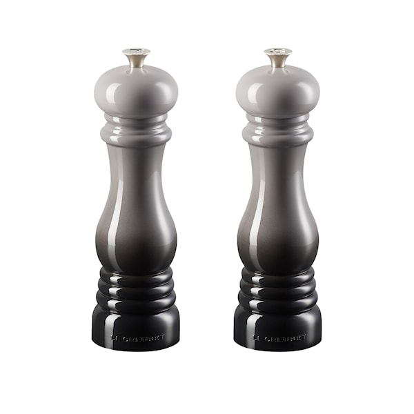 Le Creusets eleganta och effektiva salt- och pepparkvarnar är tillverkade av högblankt akryl med en keramisk malskiva som effektivt finfördelar salt och peppar. Det starka, lätta akrylmaterialet är korrosionsbeständigt och säkerställer lång hållbarhet. Knoppen, utformad i rostfritt stål, påminner om den legendariska designen på Le Creusets gjutjärnsgrytor. Genom att vrida knoppen kan man enkelt justera malningen från fin- till grovmalet.