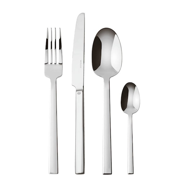 Neutra bestickset från Sambonet, 24 delar, kombinerar italiensk design med modern elegans. Tillverkat i 18/10 rostfritt stål ger det både hållbarhet och en glänsande yta som håller över tid. Serien utmärks av sitt rena formspråk – enkelt, men ändå sofistikerat.