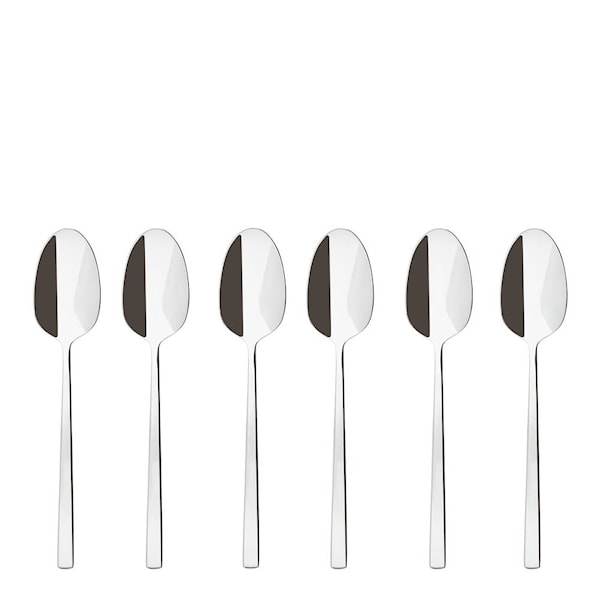 Rock teskedar / kaffeskedar från Sambonet för in modern italiensk stil i kaffestunden och tepausen. Setet består av 6 skedar i rostfritt stål med ett elegant och trendigt design. Perfekta till kaffe, te och desserter.