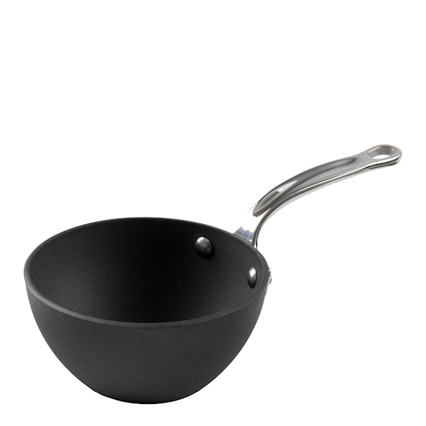 Denna lilla kastrull har ingen beläggning, men utvecklar med tiden en naturlig patina som fungerar som en non-stick-yta. Kolstålet ger snabb och jämn värmefördelning, och storleken gör den perfekt för små portioner eller som en charmig serveringsgryta direkt på bordet.