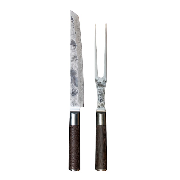 Kuro Takohiki Trancherset från Satake är ett otroligt läckert set för att kunna skära långa och fina snitt i steken eller fisken. I setet ingår Trancherkniv Takohiki 23 cm och Stekgaffel 20 cm.