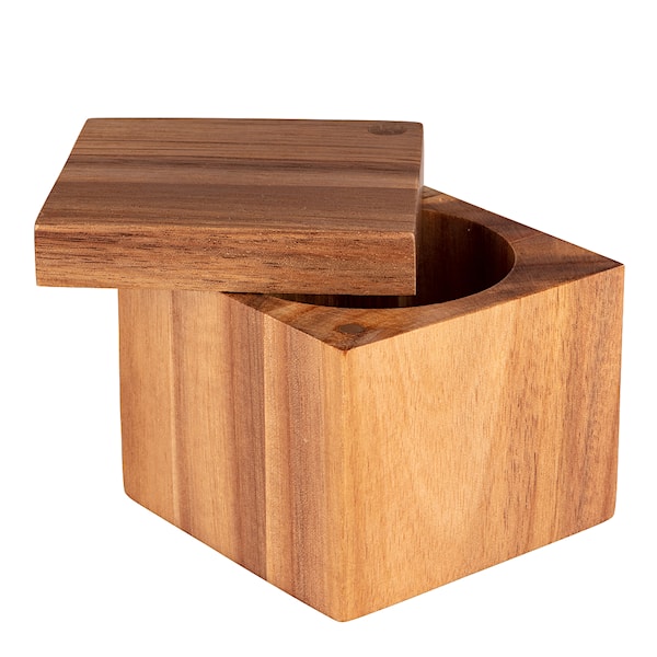 Praktisk behållare med magnetiskt vridbart lock, perfekt för salt och andra torra kryddor, vid spisen eller bordet. Burken fungerar även bra till andra saker som piller, smycken eller andra småsaker. Tillverkad av odlat acaciaträ.