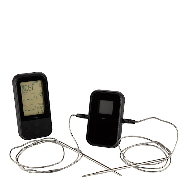 Med stektermometern Smoke håller du koll på två olika rätter samtidigt i ugnen, tack vare de båda temperaturnålarna. Via en trådlös signal ser du temperaturen och termometern piper när inställd temperatur är uppnådd. Räckvidd ca 30 meter. 4 st AAA-batterier krävs (ingår ej).