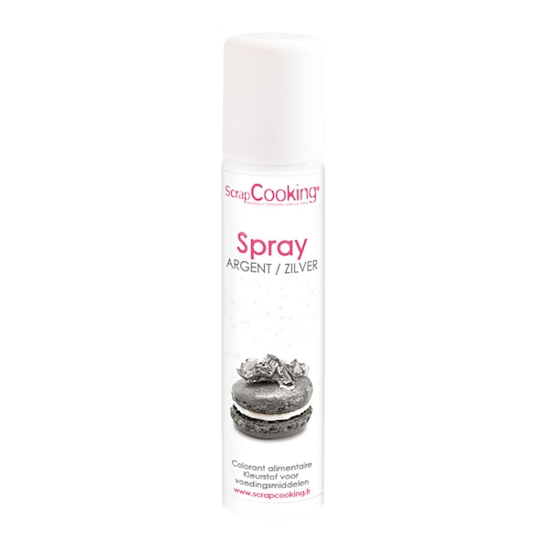 Ge dina bakverk ett elegant och glittrande utseende med silverfärgad spray från ScrapCooking. Denna 40 ml spray är perfekt för att dekorera tårtor, choklad, sockerpasta, muffins och småkakor – och sätter pricken över i:et på varje dessert.