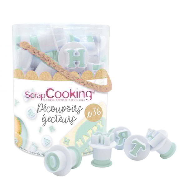 Gör bakningen både kreativ och personlig med detta kakstämpelset från ScrapCooking! I burken får du 36 cookie stamps – 26 bokstäver (A-Z) och 10 siffror (0-9) – perfekta för att skapa namn, födelsedatum eller små meddelanden på kex, pepparkakor och sockerpasta.